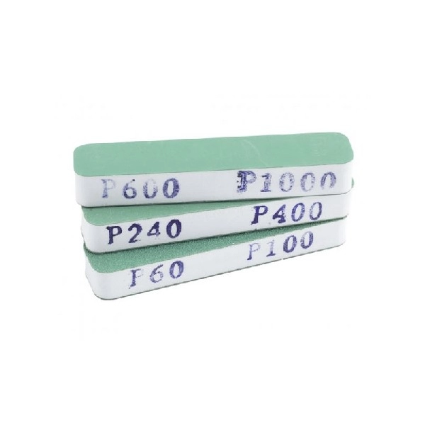 Tamponi abrasivi 90x19x12 mm (3 pz) Grana grossa (asportazione - 60/100 grit) Grana media (levigatura - 240/400 grit) Grana fine (finitura - 600/1000 grit)