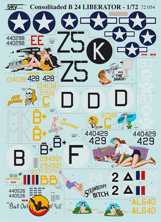 1/72 Consolidated B-24D/B-24H/B-24J Liberator (11) Includes Strawberry Bitch, Bat Out of Hell, Cocktail Hour, The Shack, Booby Trap etc