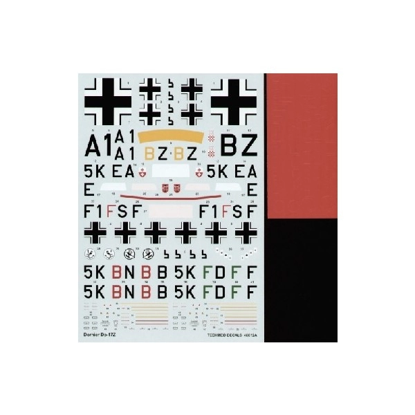 1/48 Do 17Z (6) A1+BZ 15 (Croatian)KG53 Russia 1942; F1+FS 8/KG76 France 1940; 5K-BN 5/KG3 East Prussia 1938; DN-53 3/LeLv46; DN-63 1/LeLv 46; Both Finish AF 1942; DN-52 PleLv43 Finland 1947. Inc Canopy mask
