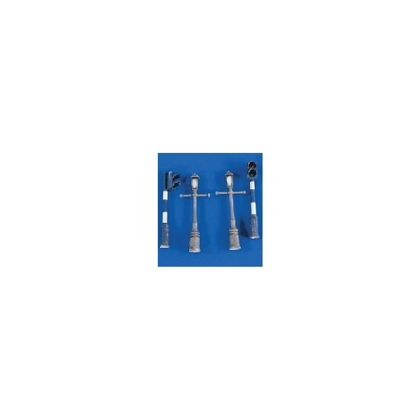 1/48 Lamp Posts and Traffic Lights. 2 each street lamps on posts and 2 each 'stop and go' 2-light traffic signals.