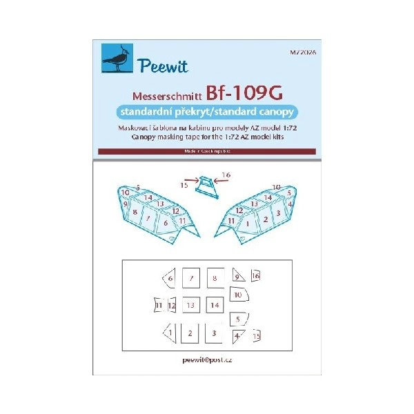 1/72 Messerschmitt Bf 109 Bf 109G - standard type of canopy (designed to be used with AZ Model kits)- AZM74034, AZM74045, AZM74046, AZM74047, AZM74052, AZM74053, AZM74054, AZM74055, AZM74056, AZM74058, AZM74059, AZM74060, etc)