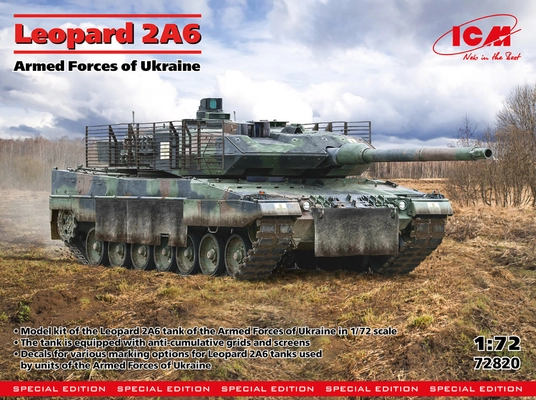 Kit carro armato Leopard 2A6 (Forze armate dell'Ucraina) in scala 1/72 - Modello ICM.