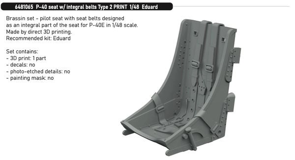 Set Brassin Sedile del Curtiss P-40E Warhawk con cinture integrate Tipo 2 in scala 1/48.